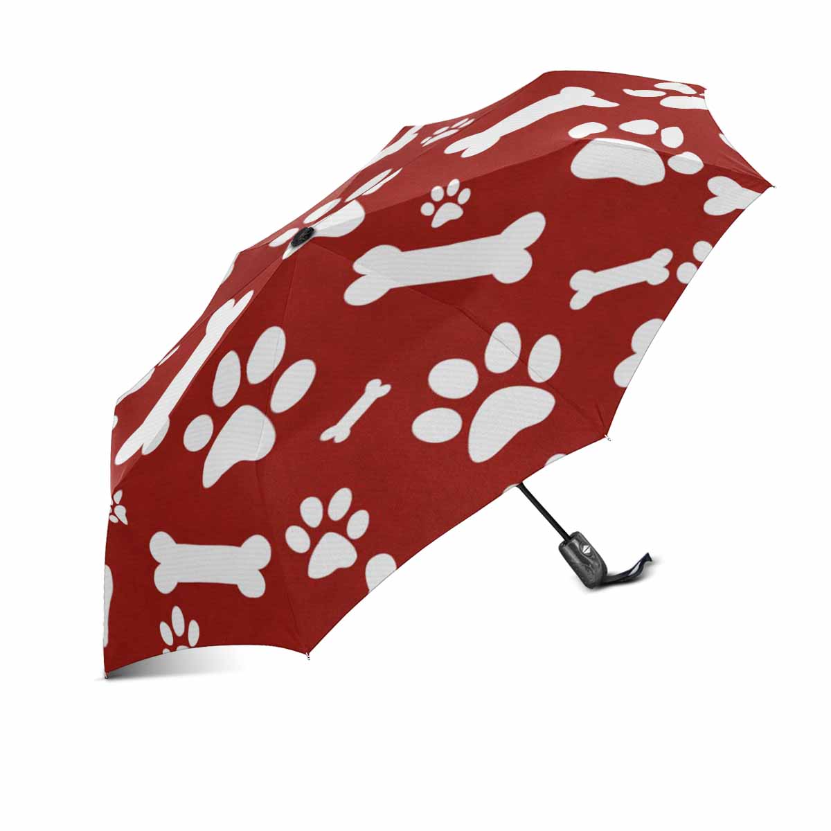red with white dogs pawprint bones pattern travel umbrella automatic windproof foldable
