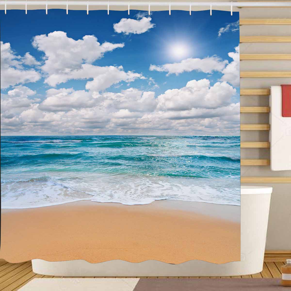 Beach and Ocean themed print on shower curtains for bathroom, create a brilliant atmosphere in your bathroom, include a selection of different stylish and custom-made designs for your bath decoration.