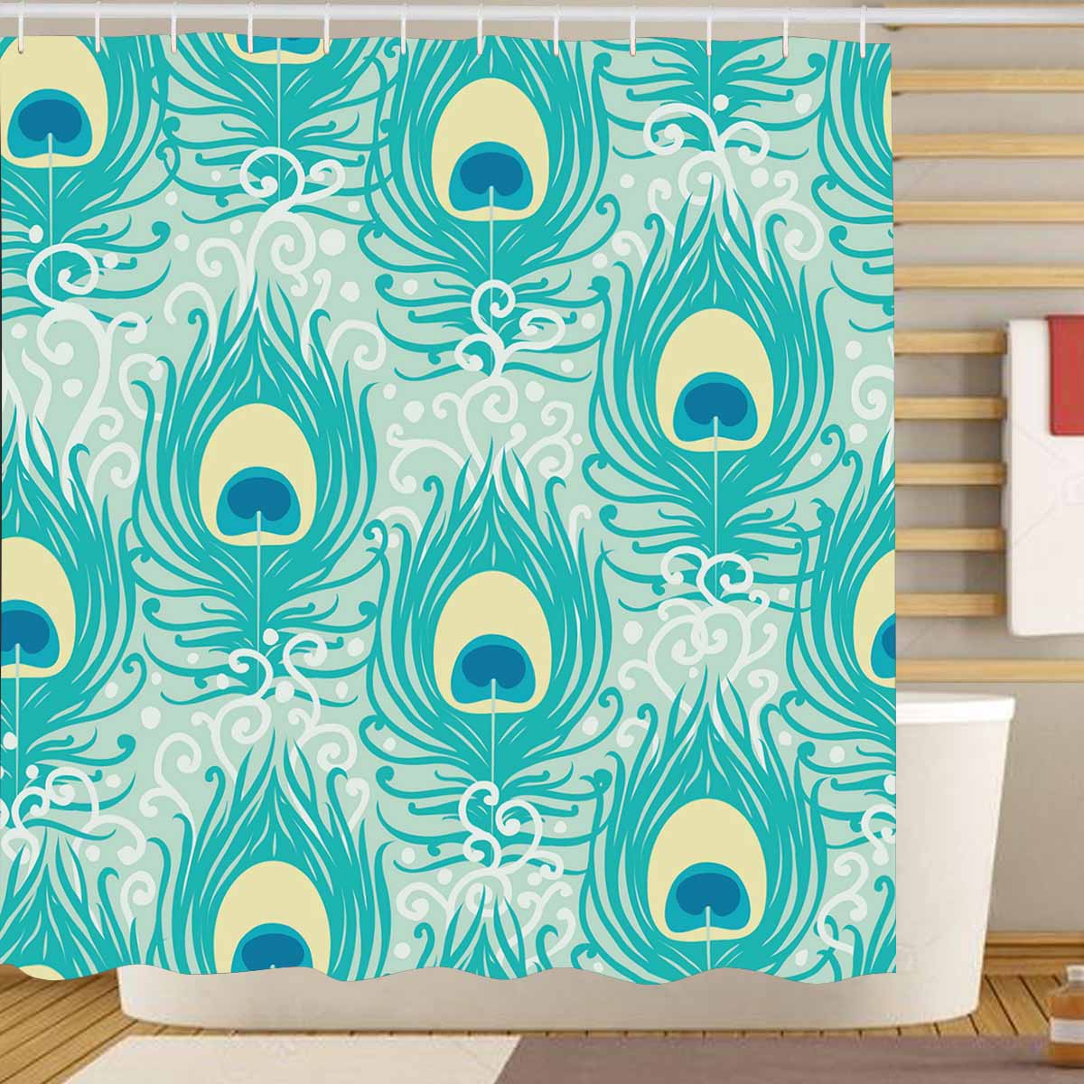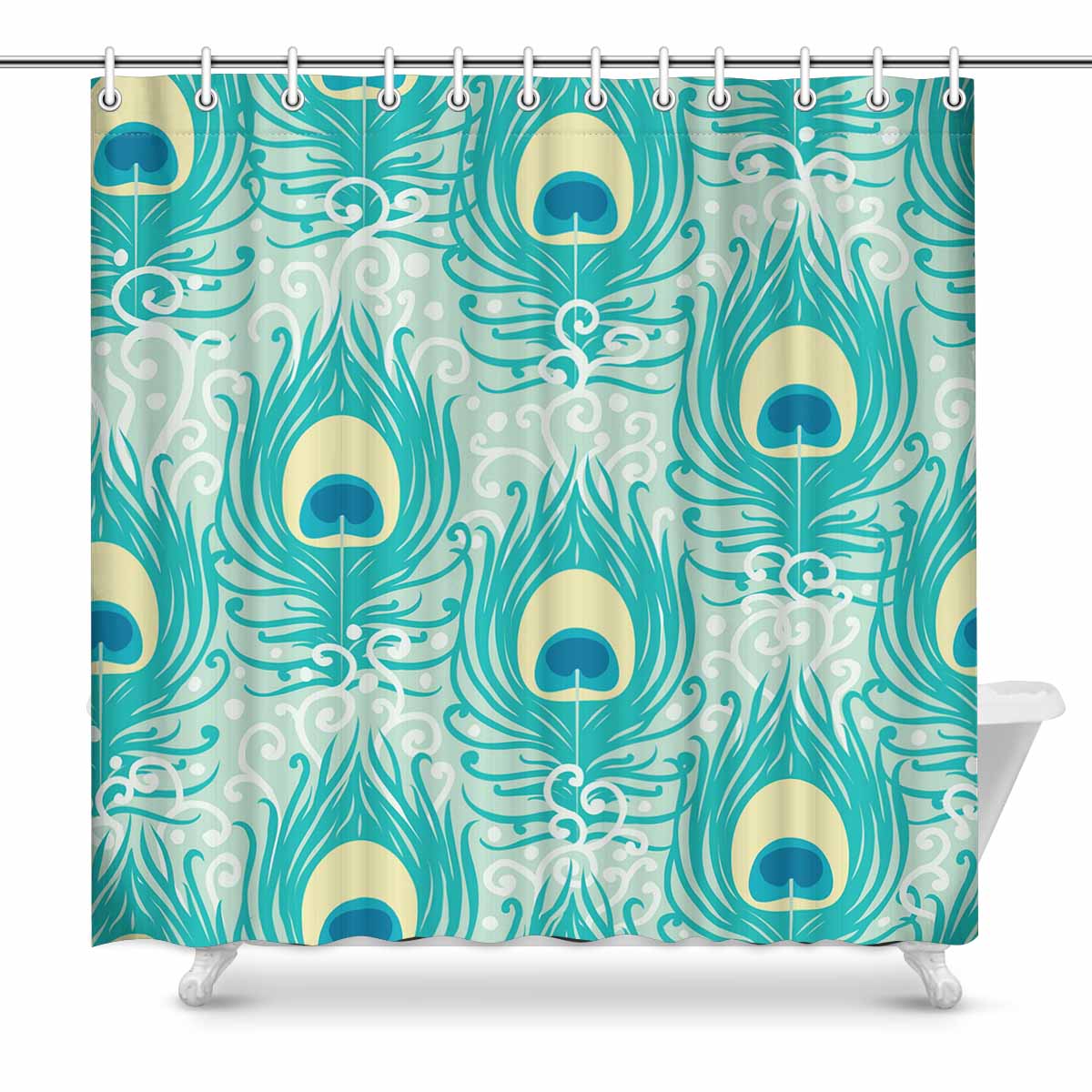 Shower Curtains print with hand drawn Peacock feathers pattern background
