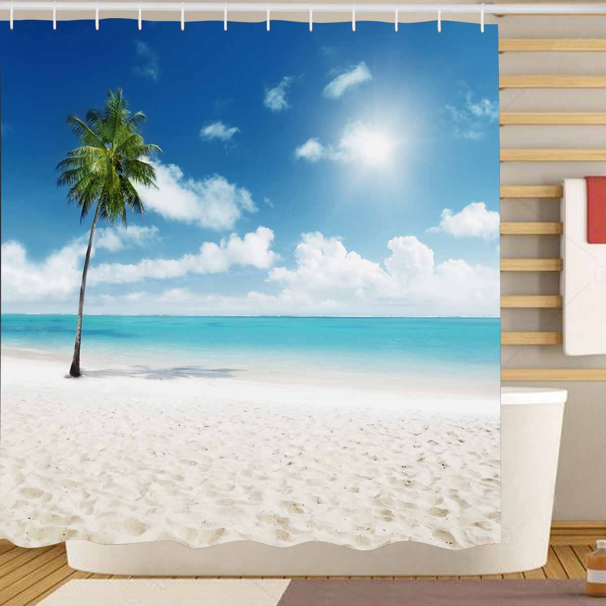 Beach and Ocean themed print on shower curtains for bathroom, create a brilliant atmosphere in your bathroom, include a selection of different stylish and custom-made designs for your bath decoration.