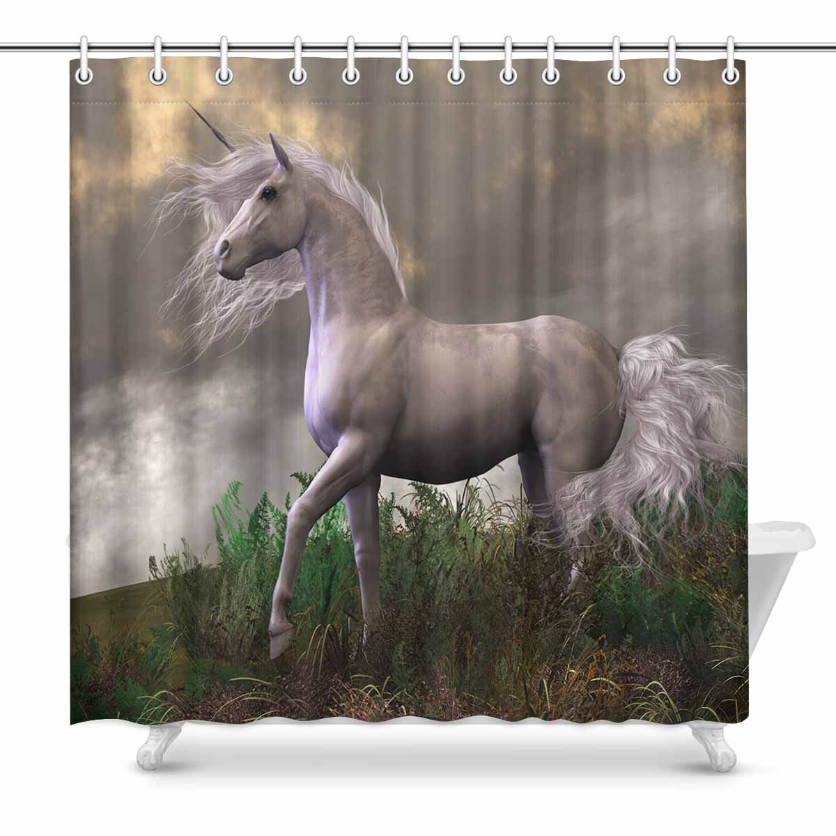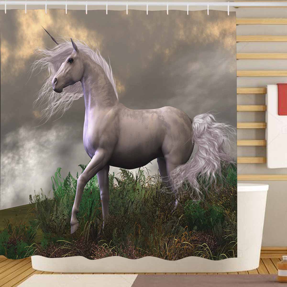 Shower Curtains print with White Unicorn Stallion