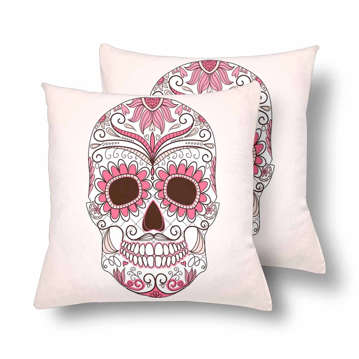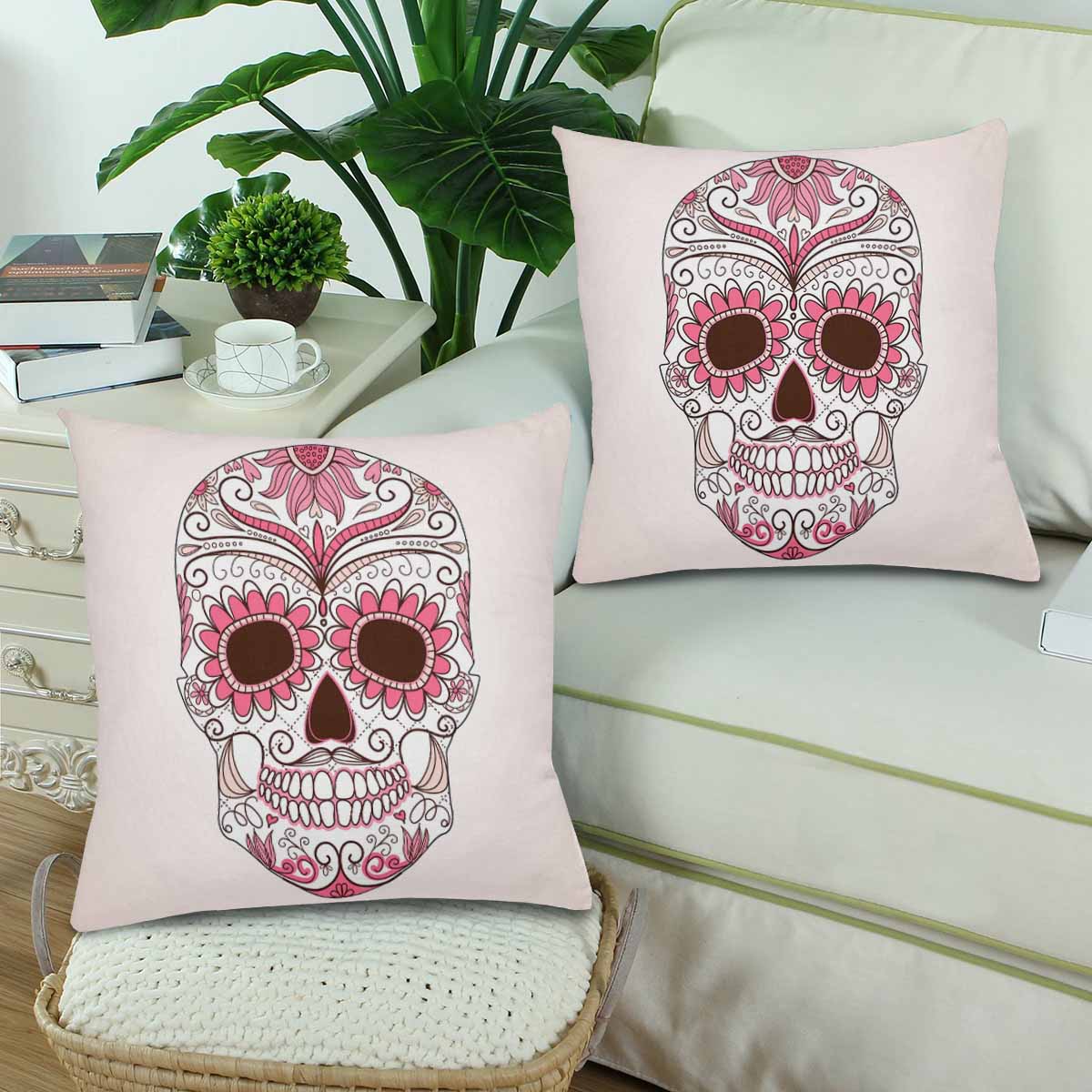 Skull themed Pillow Cases printed with colorful Skull with floral ornament