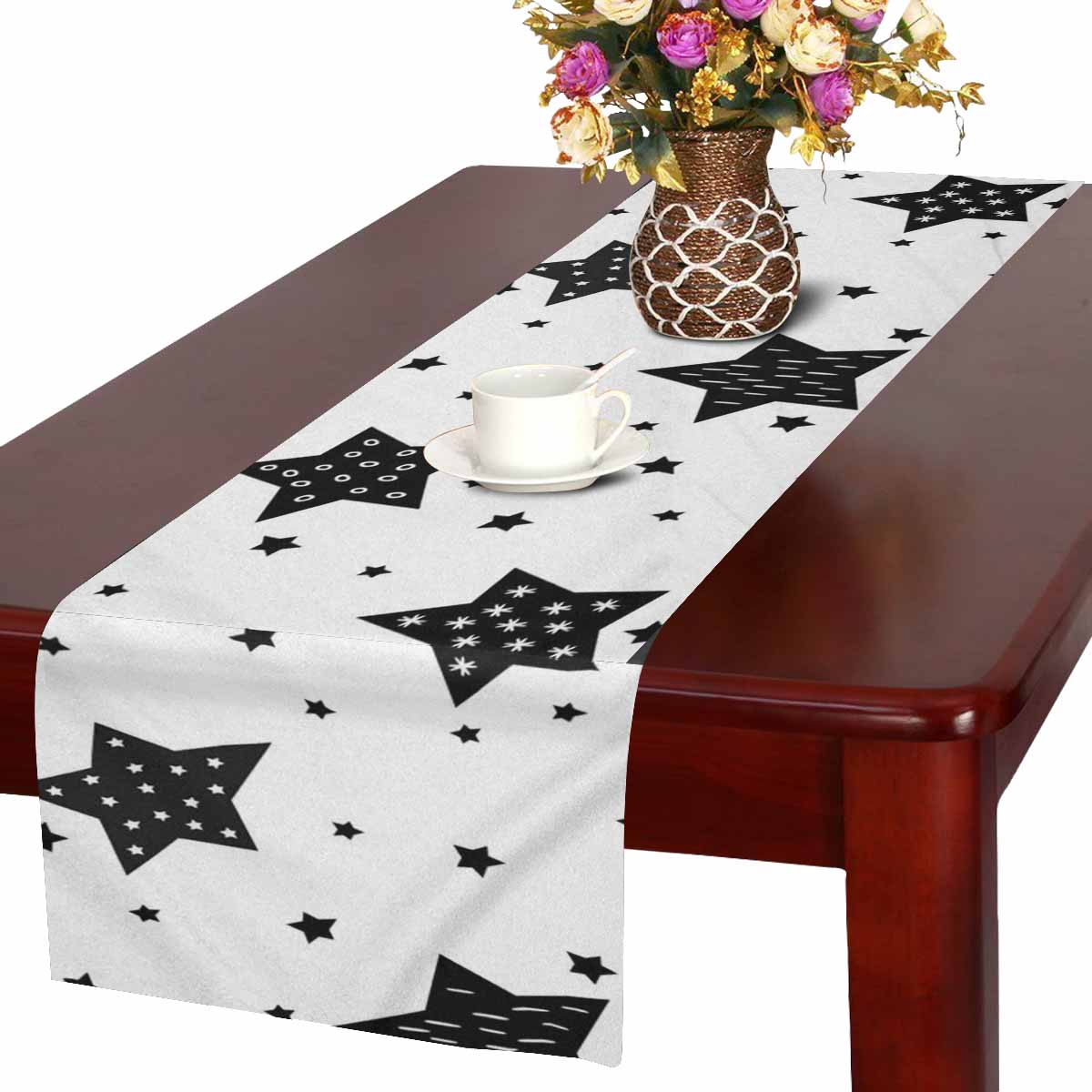 Zenzzle Table Runner 16in*72in print with black and white pattern with cute stars