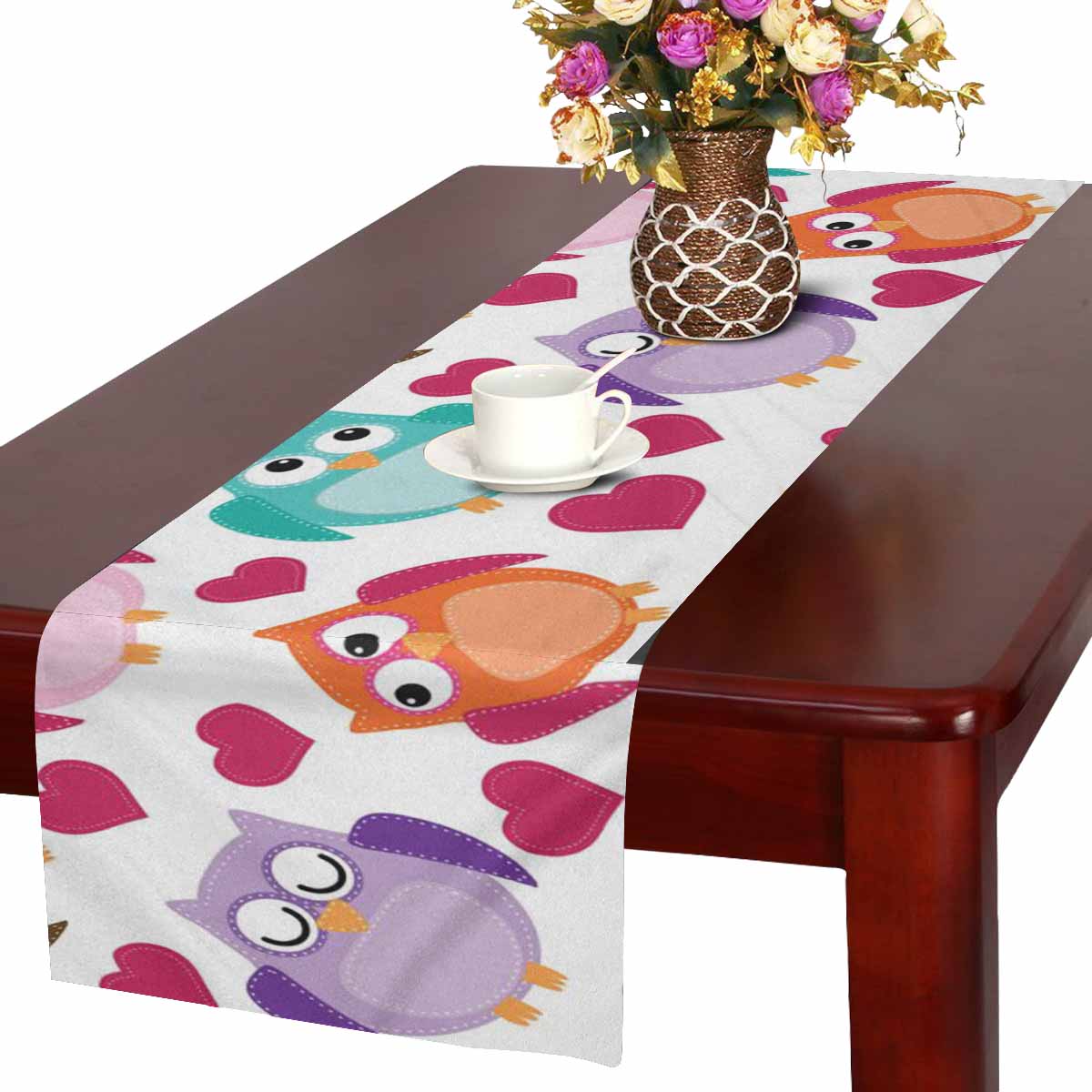Zenzzle Table Runner 16in*72in print with cute owl pattern with hearts