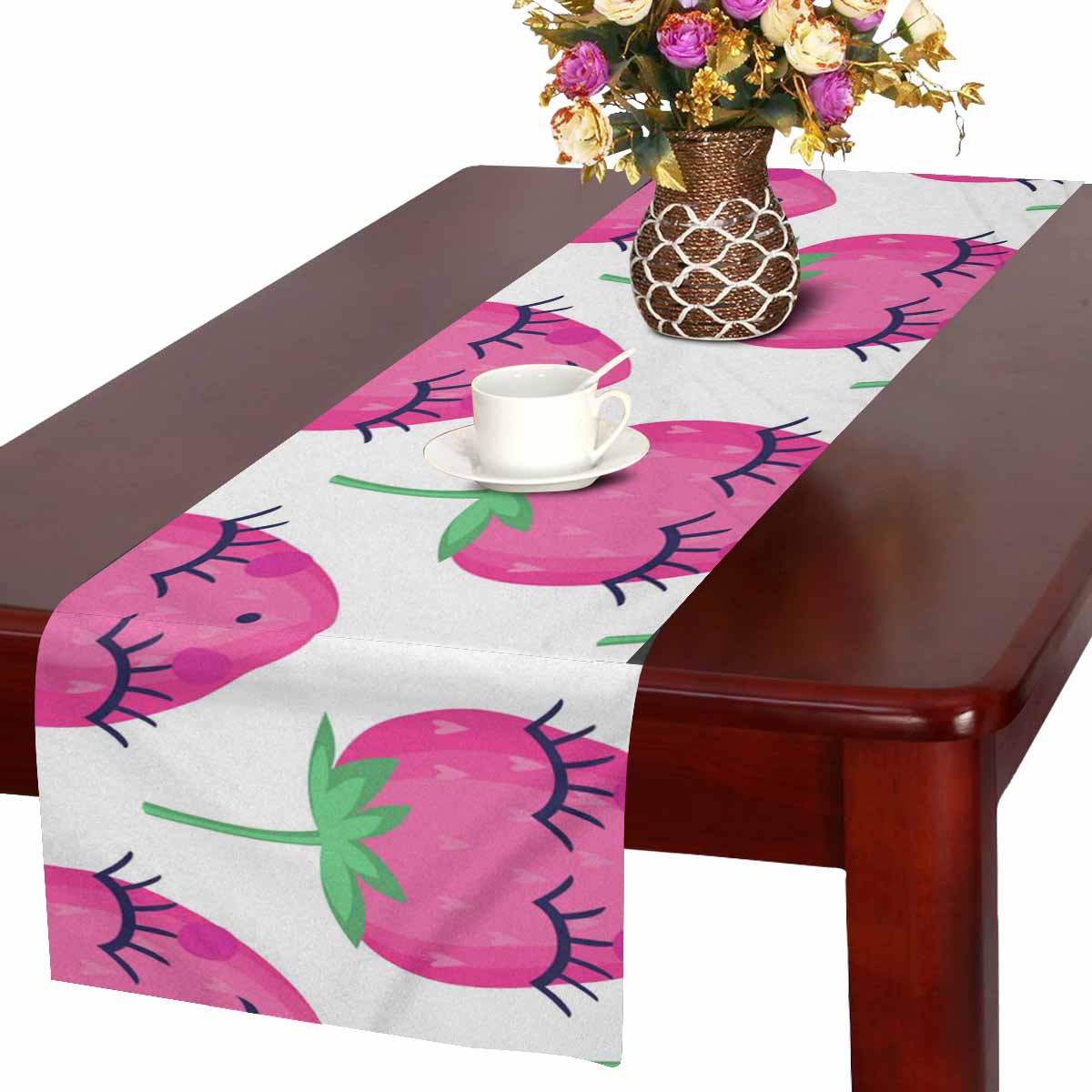 Zenzzle Table Runner 16in*72in print with smiling sleeping strawberries